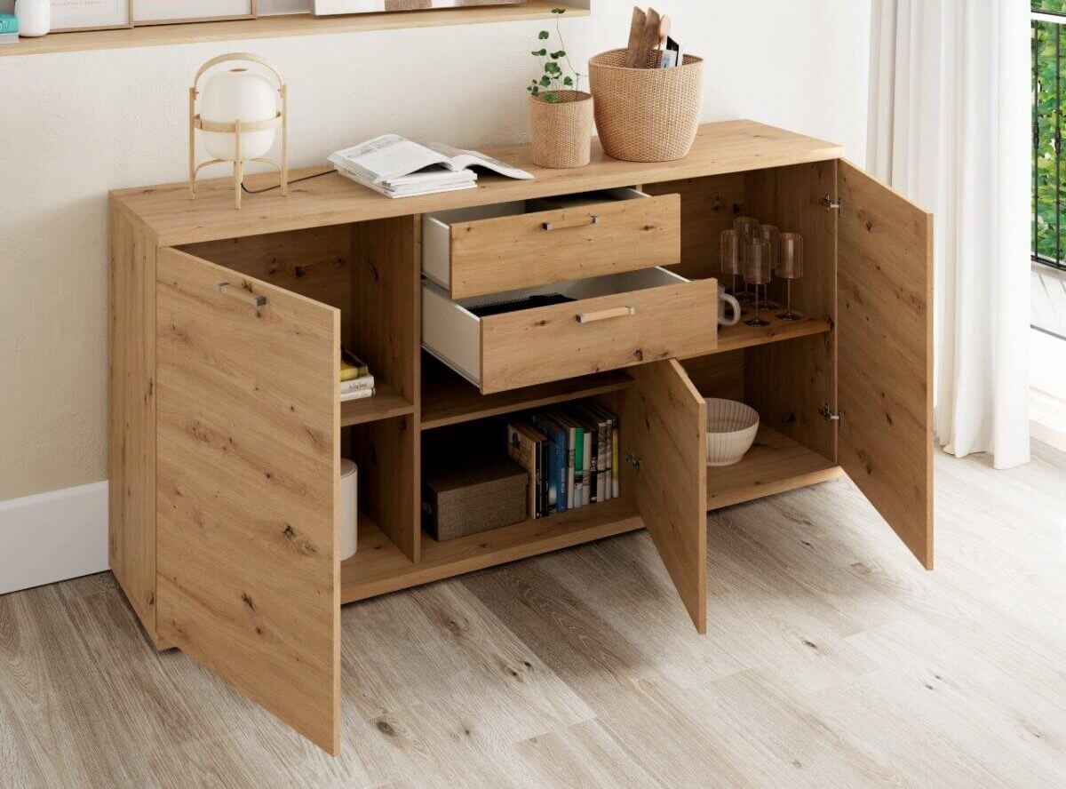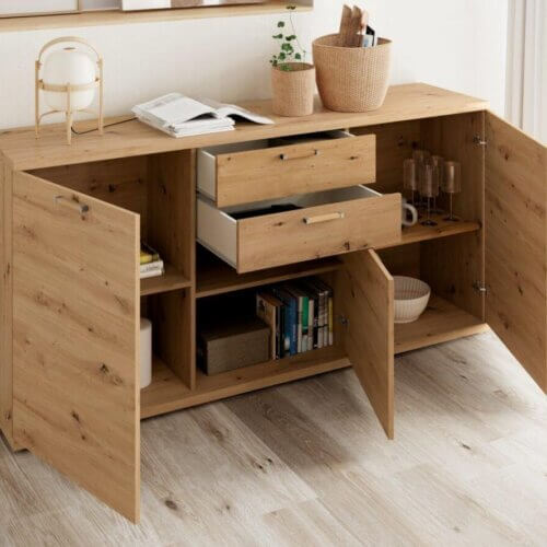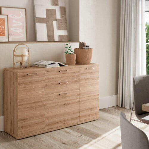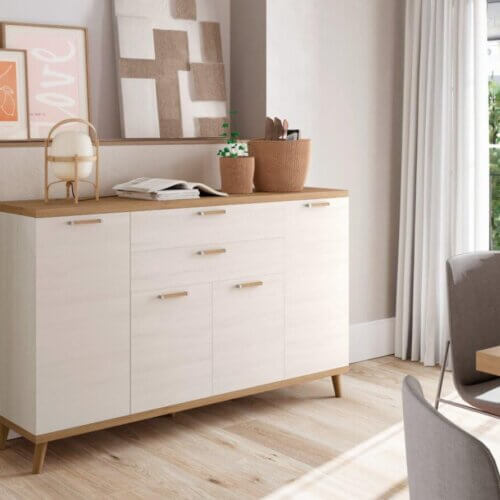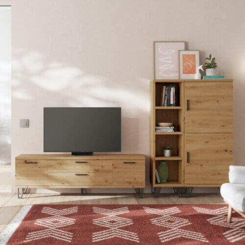 Los módulos que componen la colección de salones Kronos se caracterizan por ser muebles prácticos, sólidos, funcionales y con una gran capacidad de almacenaje. Los módulos tienen grosores de 3cm. en tapas y bases.