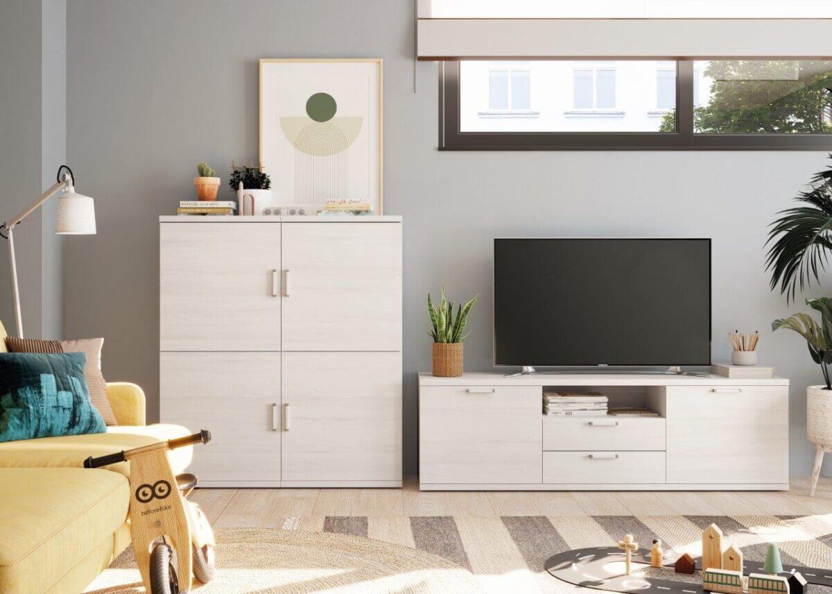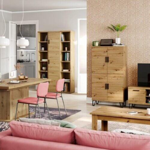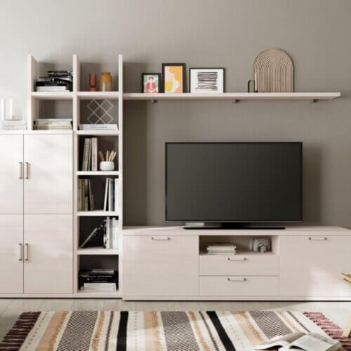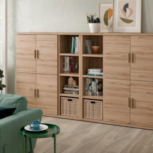 La colección de salones Kronos tiene la capacidad de adaptarse a las exigencias de cada hogar, pudiendo hacer composiciones personalizadas adaptándose a las medidas disponibles de cada consumidor.